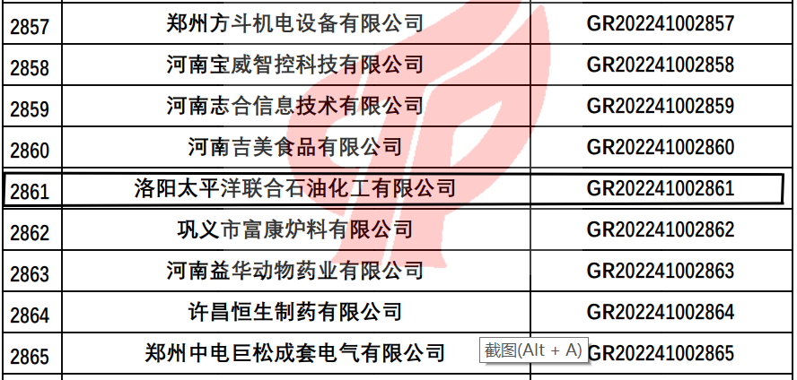 近日,河南省2022年第一批備案高新技術(shù)企業(yè)名單正式公告,洛陽(yáng)太平洋聯(lián)合石油化工有限公司榮膺在列,光榮上榜!